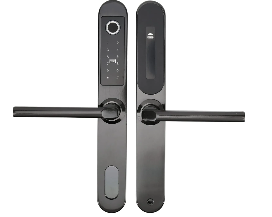 1. Move the handle up and the door will lock - the pin code does NOT need to be entered.